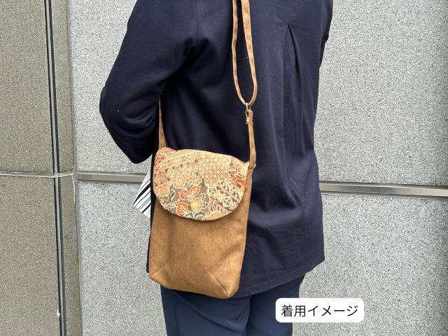 軽くて普段使いのできるポシェットです。肩ひもの長さを調整できます。内側はポケット付きで、鍵や小物が取り出しやすくなっています。裁断済み生地の縫製、検査の工程を刑務作業で実施して製作しました。