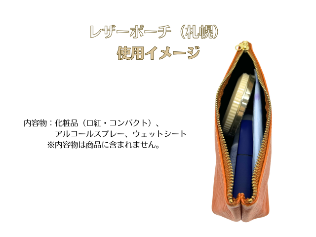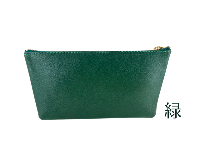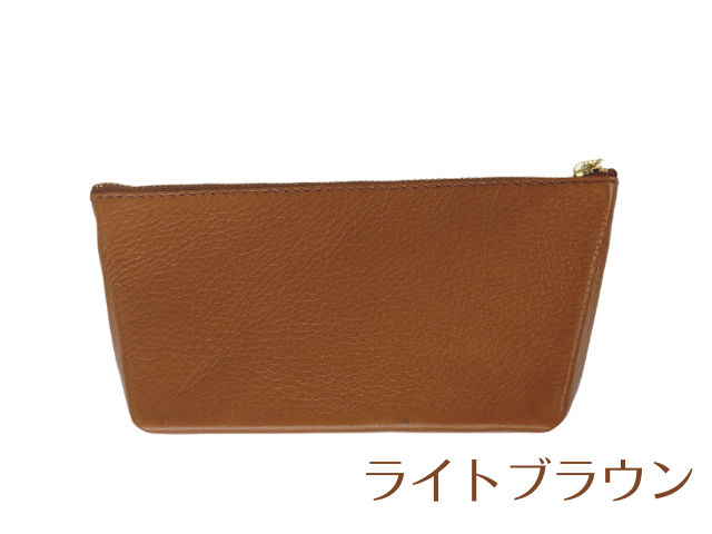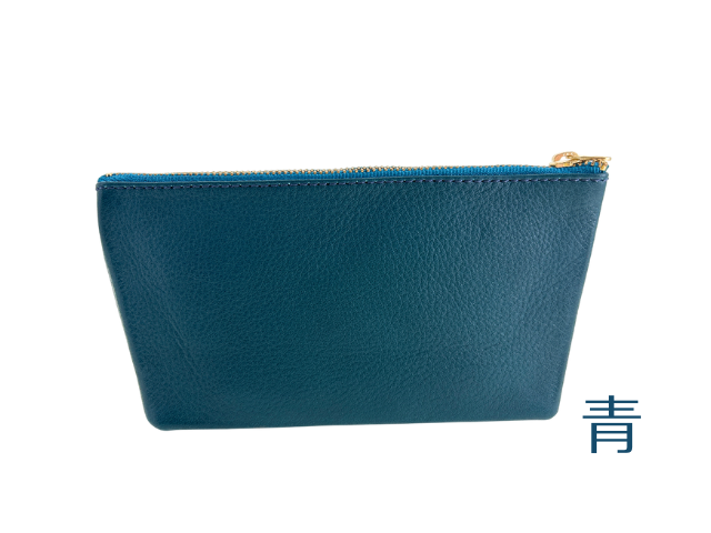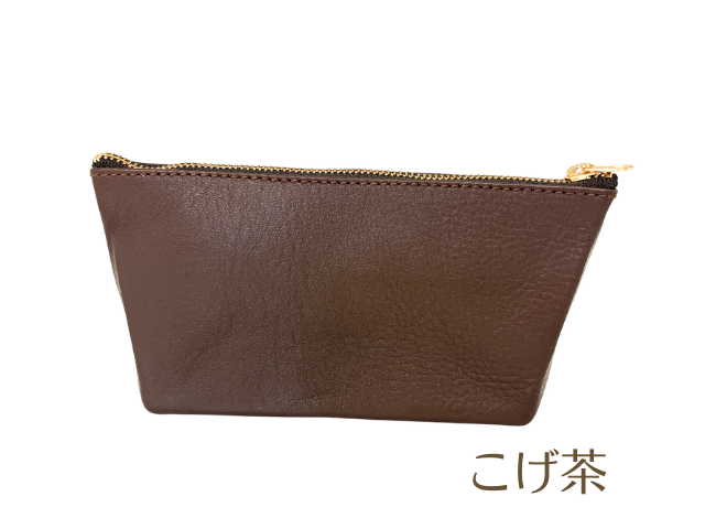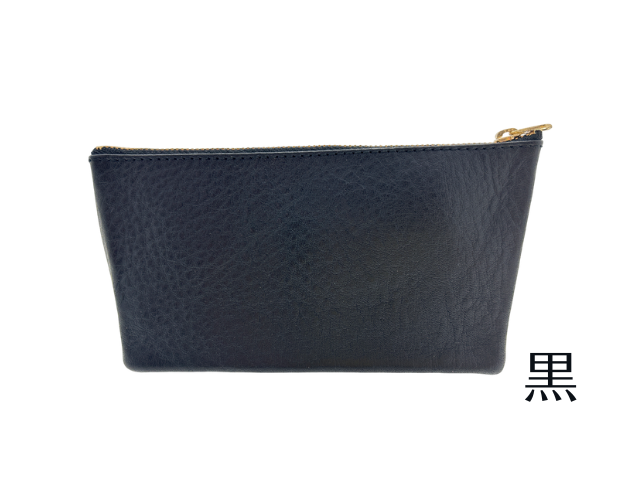牛革製のポーチです。裁断、漉き(すき:革の厚みを目的に合わせて調整する作業)、組立、縫製の工程を刑務作業で実施して製作しました。牛革の良さは、耐久性と使い込むほど表れる独自の色とツヤ。手に馴染みやすく、革の中では比較的お手入れしやすいという強みもあります。